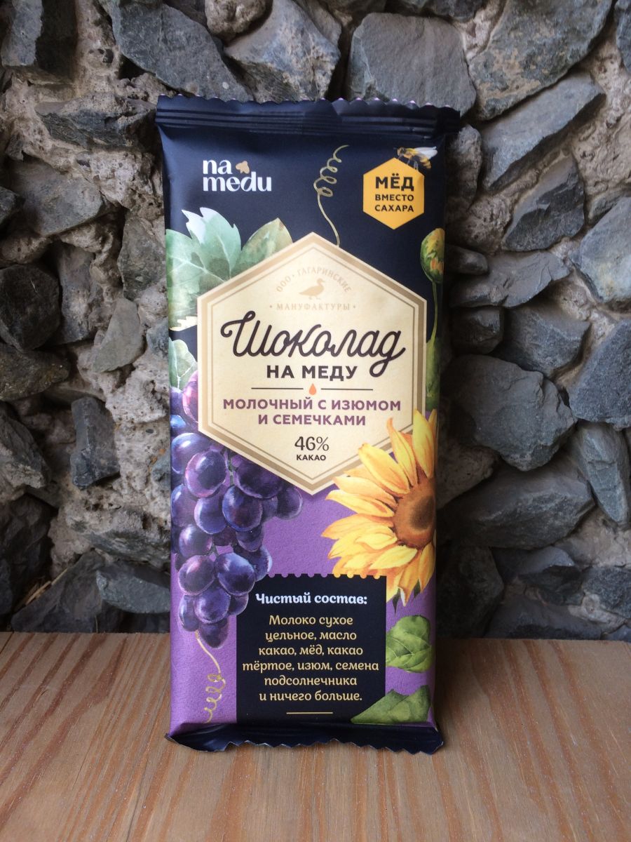 "Шоколад на Меду" Молочный с Изюмом и Семечками 70г
