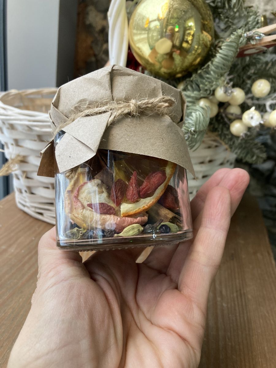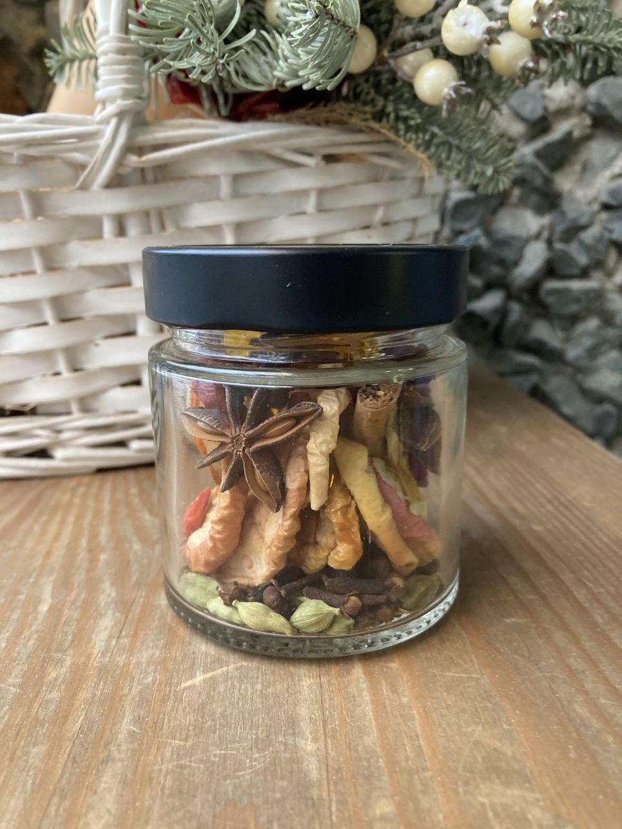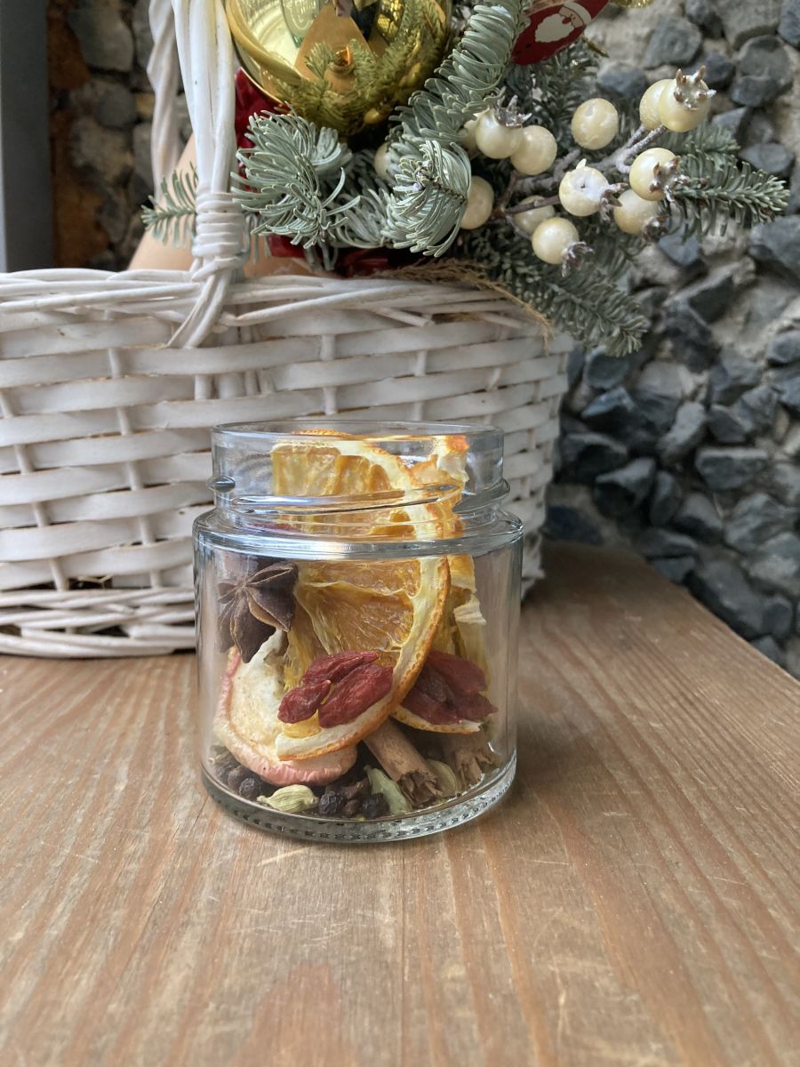 Ароматные специи и фрукты для зимнего глинтвейна в стеклянной баночке, объемом (200мл)