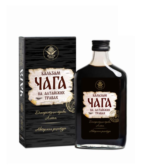 Бальзам «Чага» - это концентрированная вытяжка на основе чаги и отборного дикорастущего сырья Горного Алтая. Содержит уникальный комплекс целебных веществ. Благодаря входящим в состав травам и грибу Чага, бальзам рекомендуется при заболеваниях желудочно-кишечного тракта, улучшения аппетита, пищеварения, усиления моторной функции желудка и кишечника
