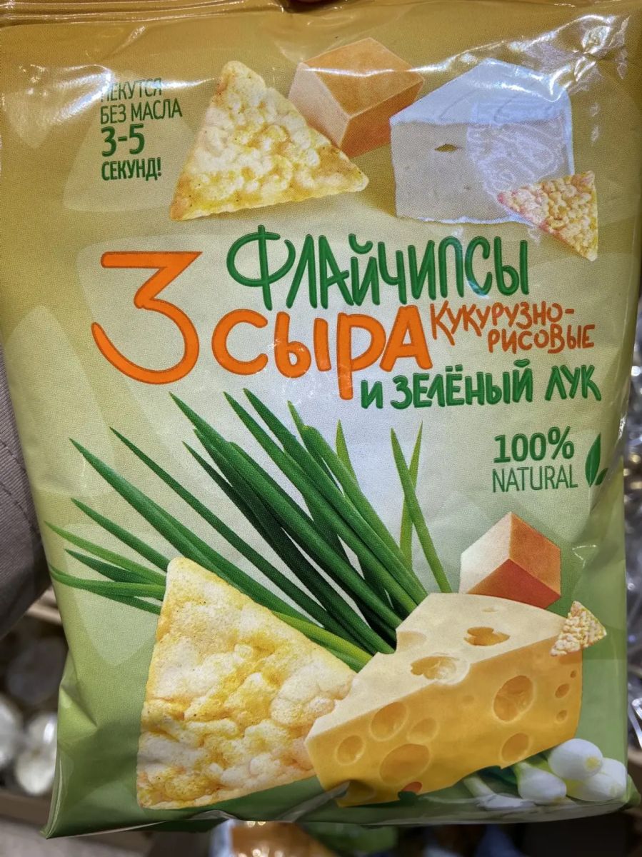 Флайчипсы зерновые кукурузно-рисовые « 3 сыра и зеленый лук»
