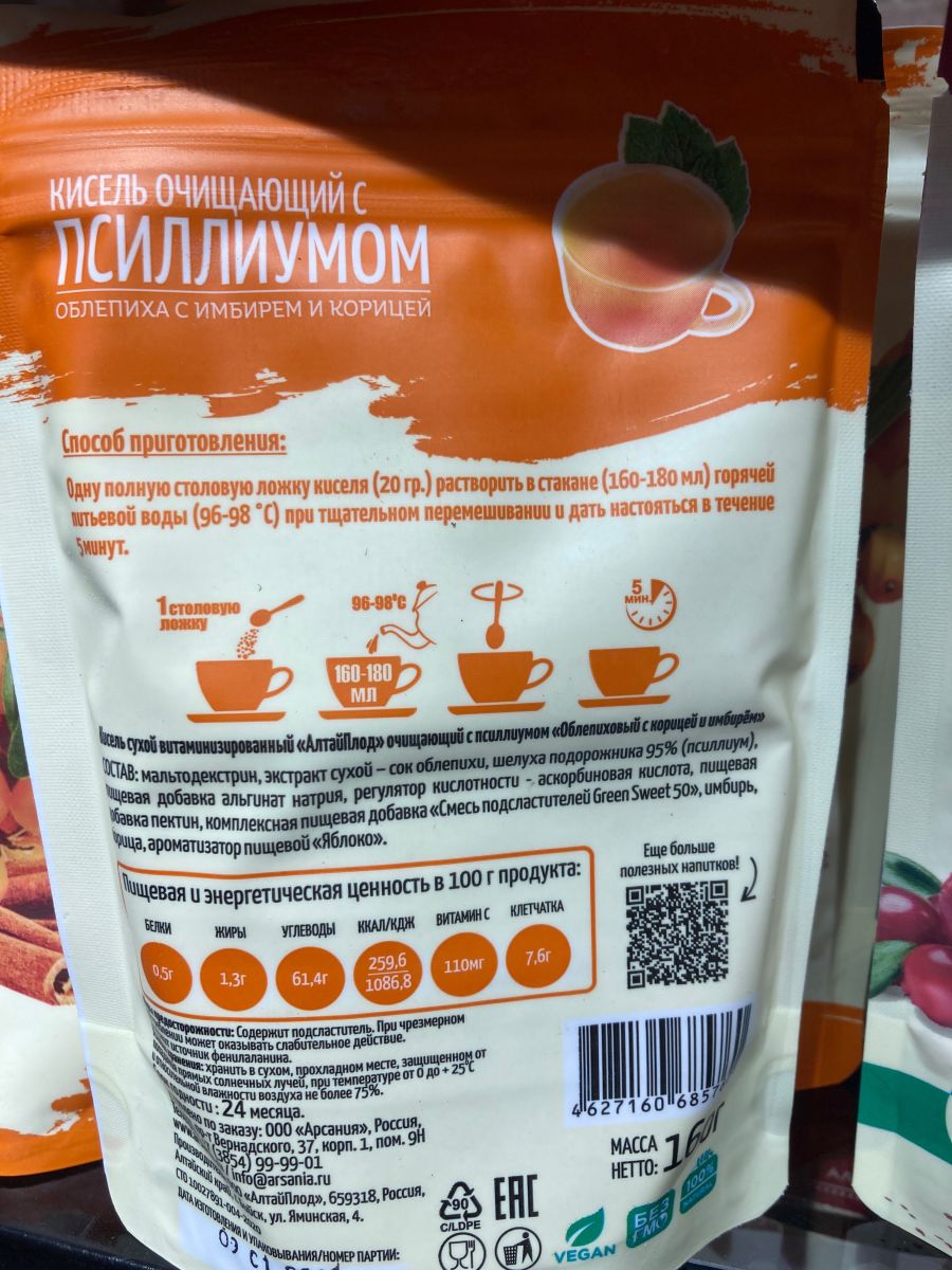 Кисель псиллиум облепиха имбирь 160гр