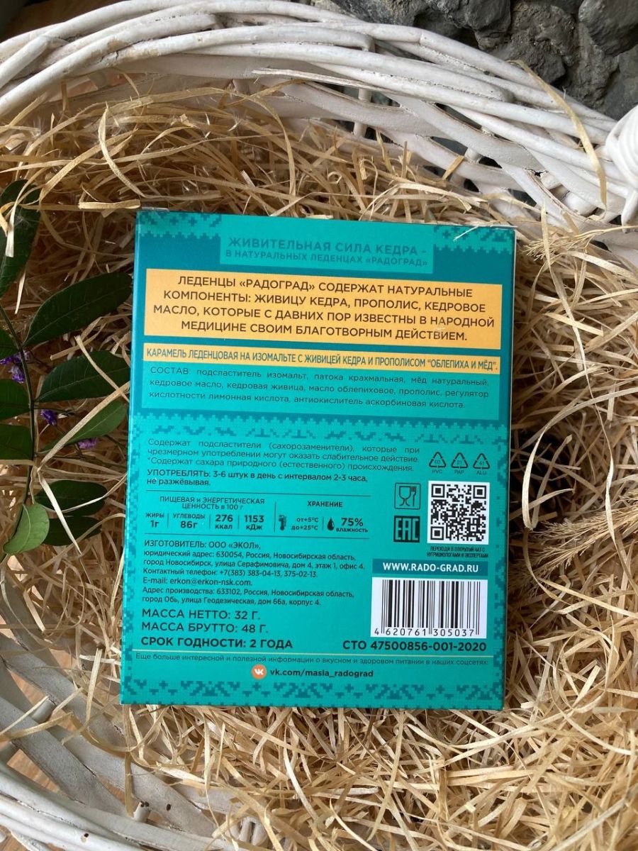 Леденцы живичные облепиха, мёд (на изомальте) 10 шт
