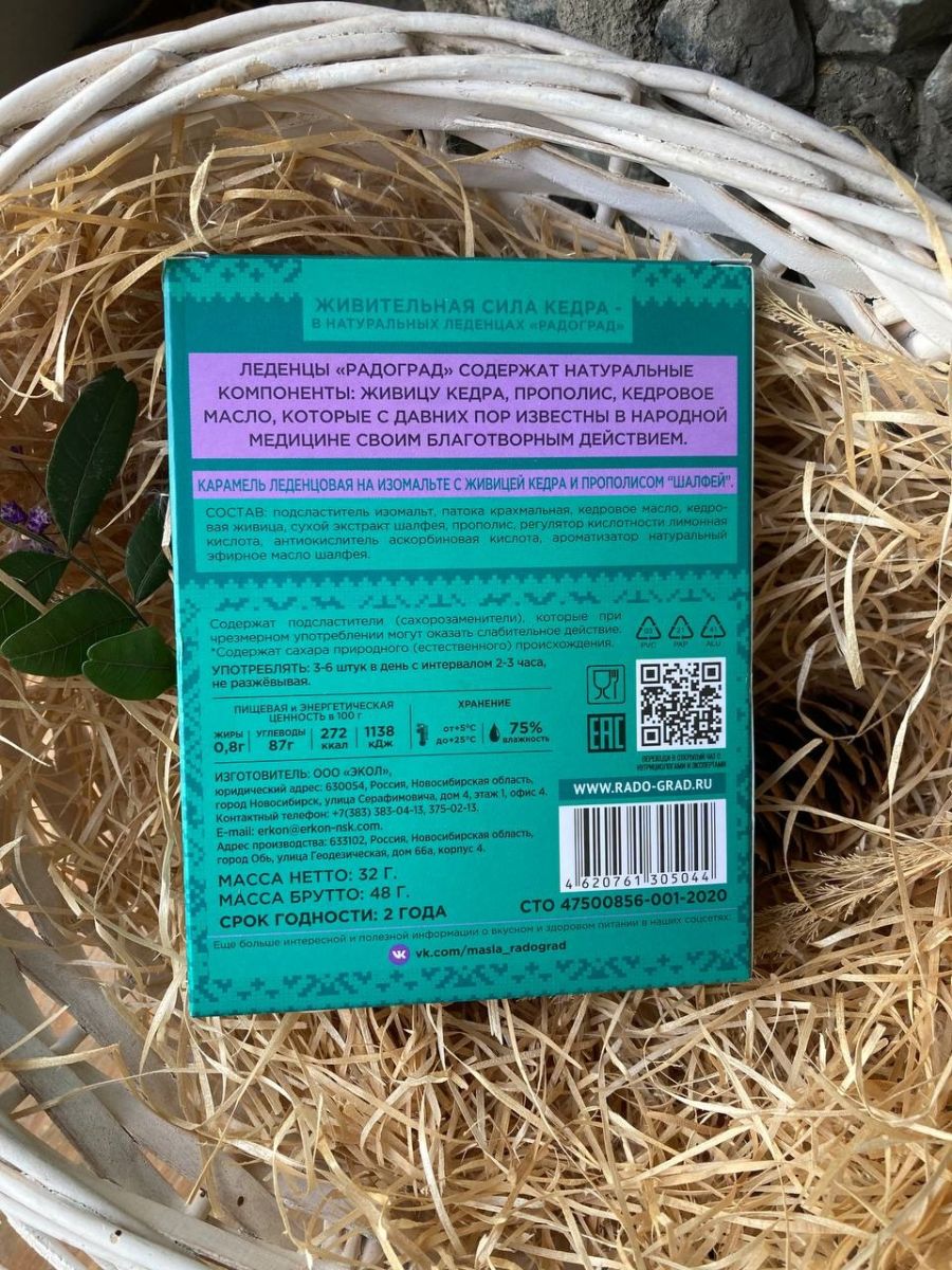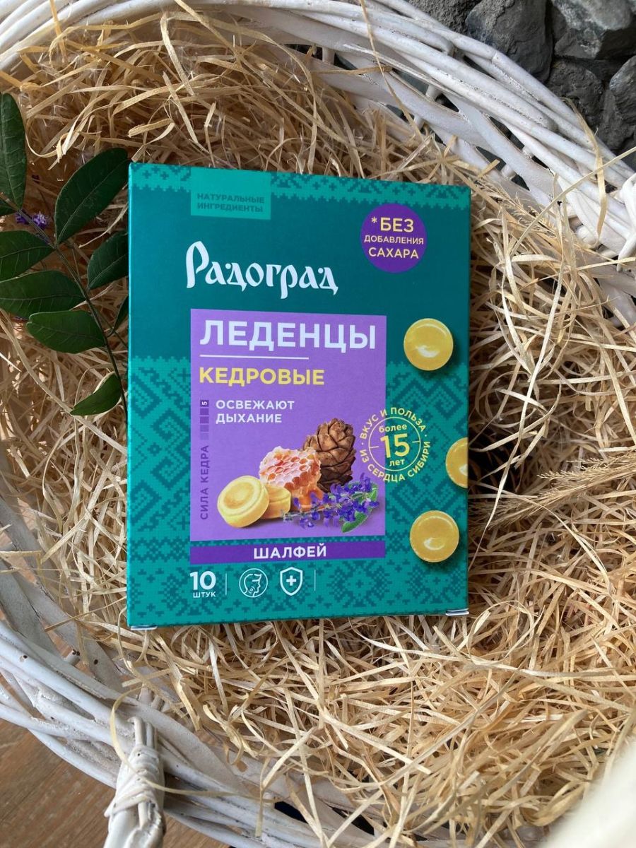 Леденцы живичные «Радоград», с прополисом (шалфей на изомальте) 10 шт.