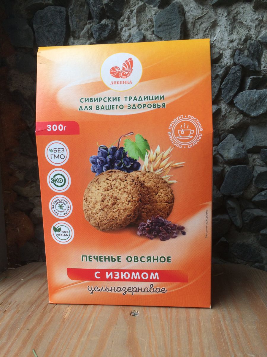 Печенье Овсяное цельнозерновое с изюмом 300 гр