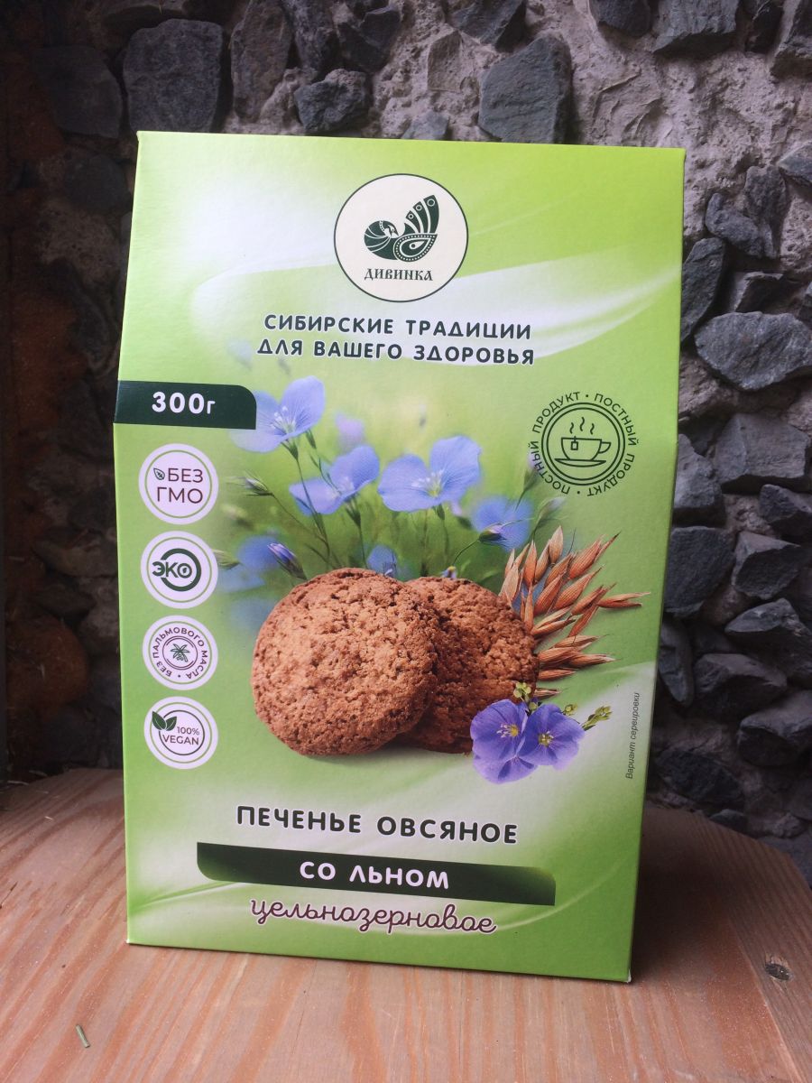 Печенье овсяное цельнозерновое со льном 300гр»Дивинка»