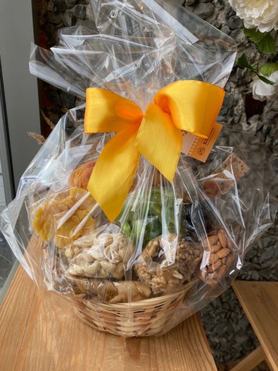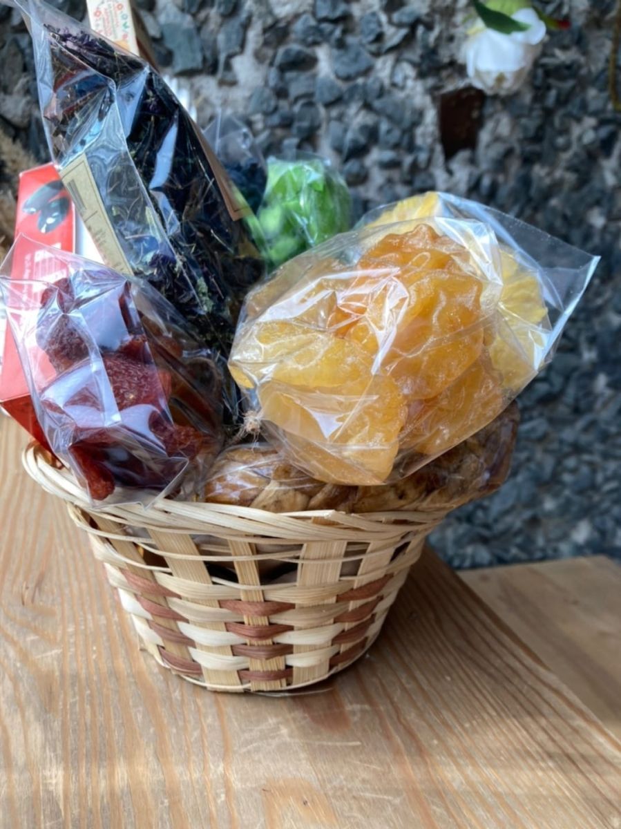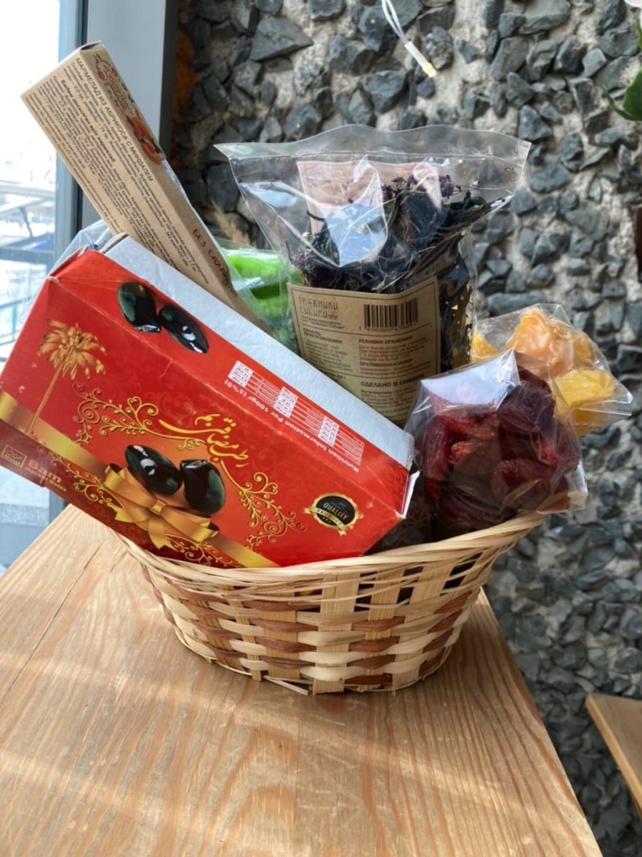 Подарочная корзина «Ароматное чаепитие» Каталог / Подарки / Корзинки / 1000-3000 Характеристики товара Производитель: КЛЮКВА Материал: корзинка бамбуковая Новинка: 1 Состав: Натуральные, вкусные и свежие продукты Противопоказания: Индивидуальная непереносимость компонентов продукта Вес: 1,9 Длина, см: 26 Ширина, см: 18 Высота, см: 24 2 940 ₽ – 1 + Купить в 1 клик Состав: Иван чай ферментированный с душицей Финики свежий урожай Иран 500 г Ягодный мармелад без сахара на стевии Помело и груша цукат Грецкий орех Ананас натуральный, персик и груша к чаю цукат Лечебный сочный изюм Миндаль отборный, крупный, сладкий Кешью из Вьетнама