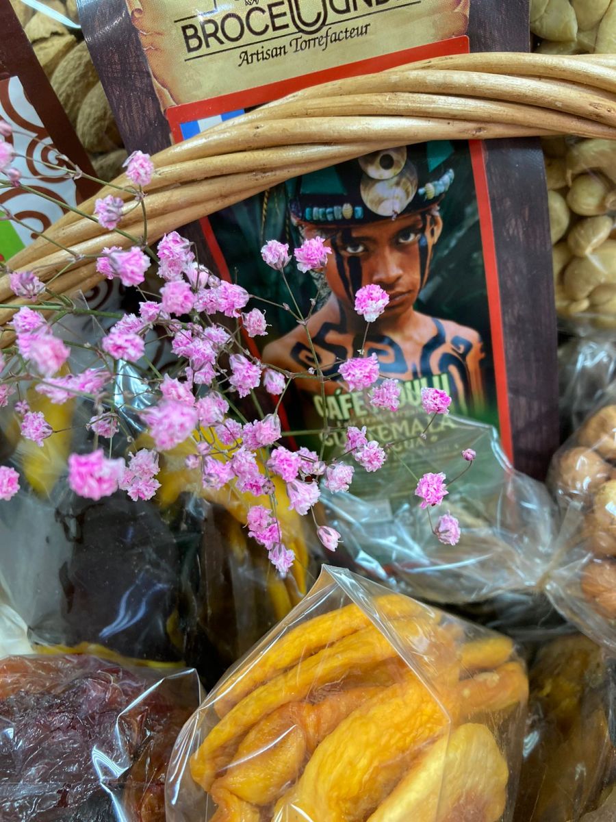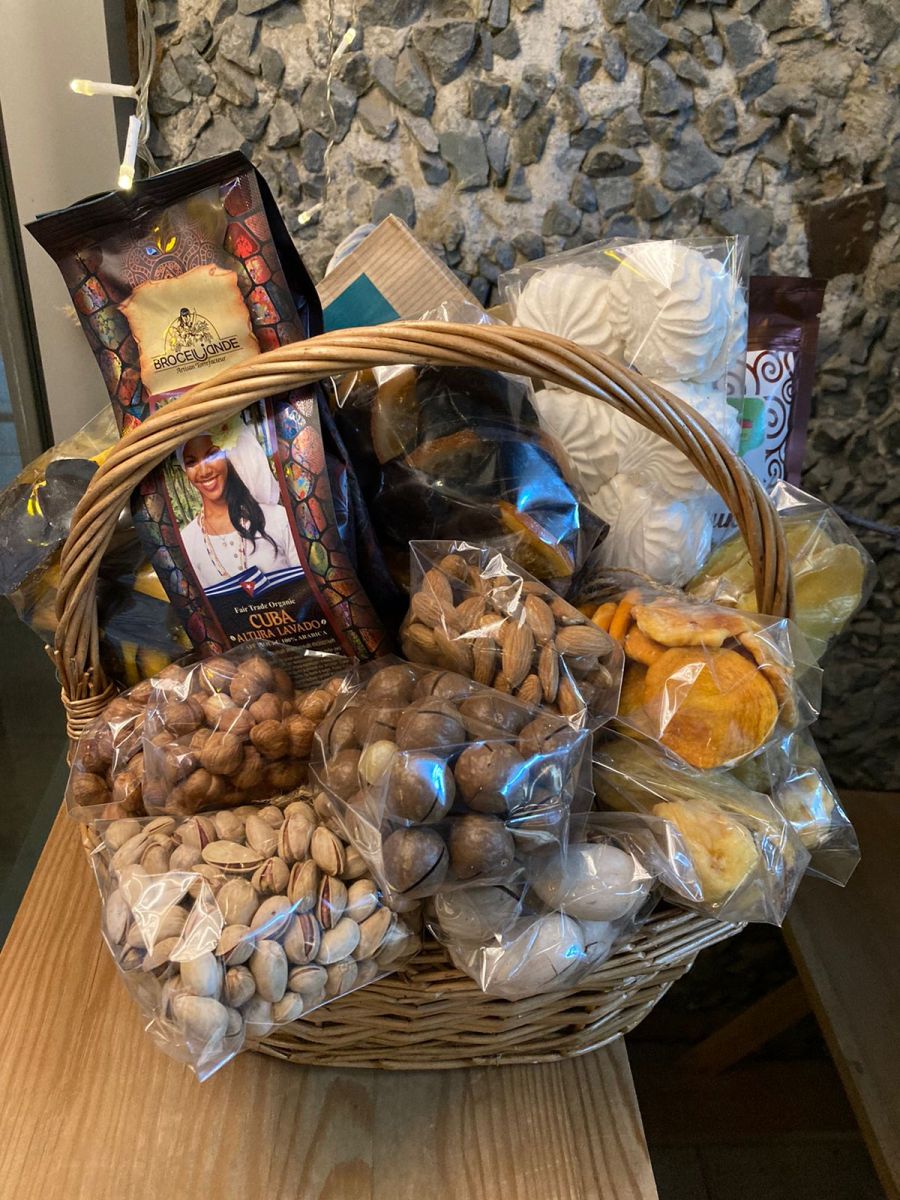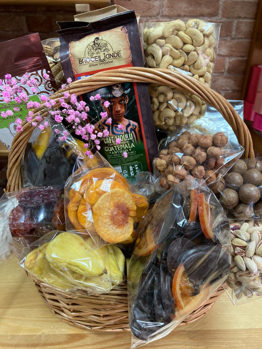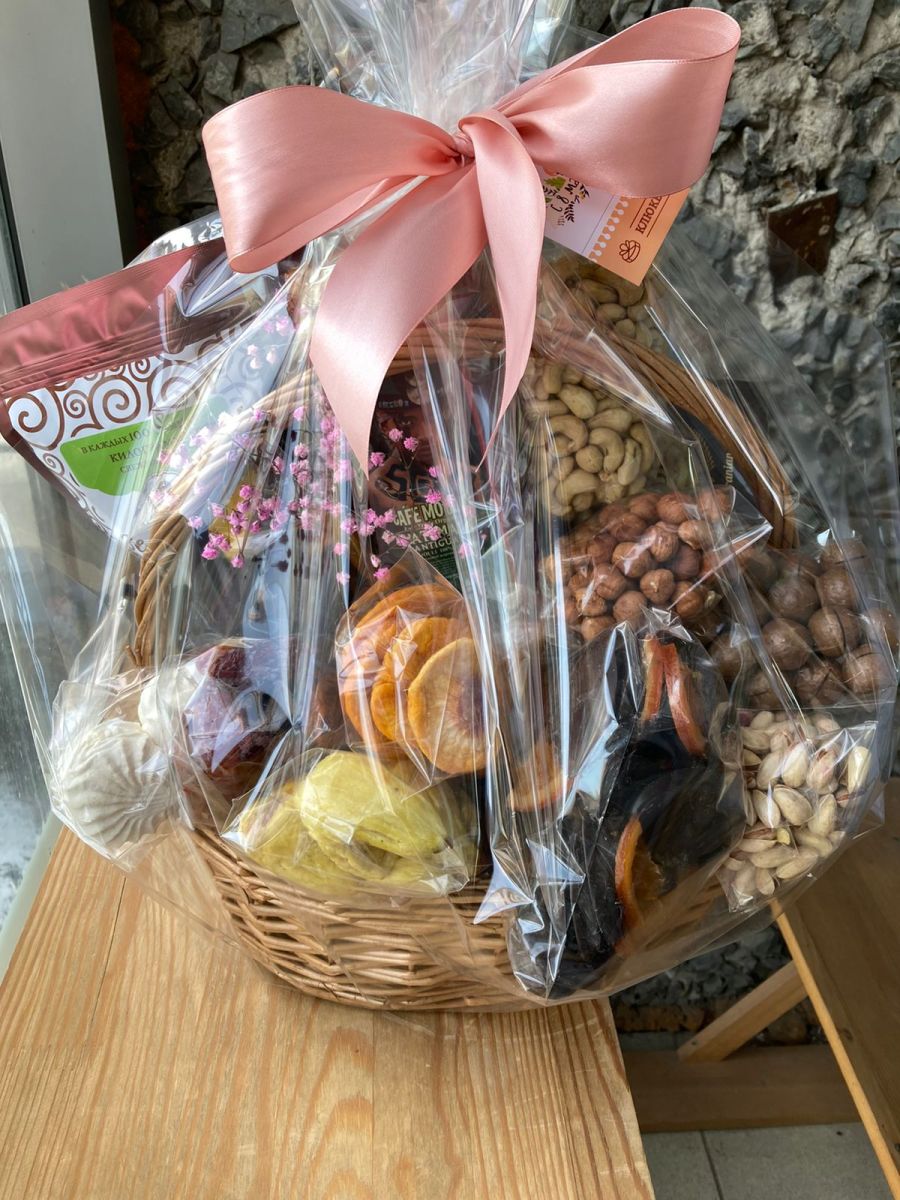 Цукаты апельсина и манго в шоколаде, фундук, кешью, макадамия, слайсы наутральной хурмы, кофе в зернах/молотый, чай иван-чай ферментированный, зефир, персик, слива и груша Армения, миндаль очищенный, фисташка, Халва, финики Иран