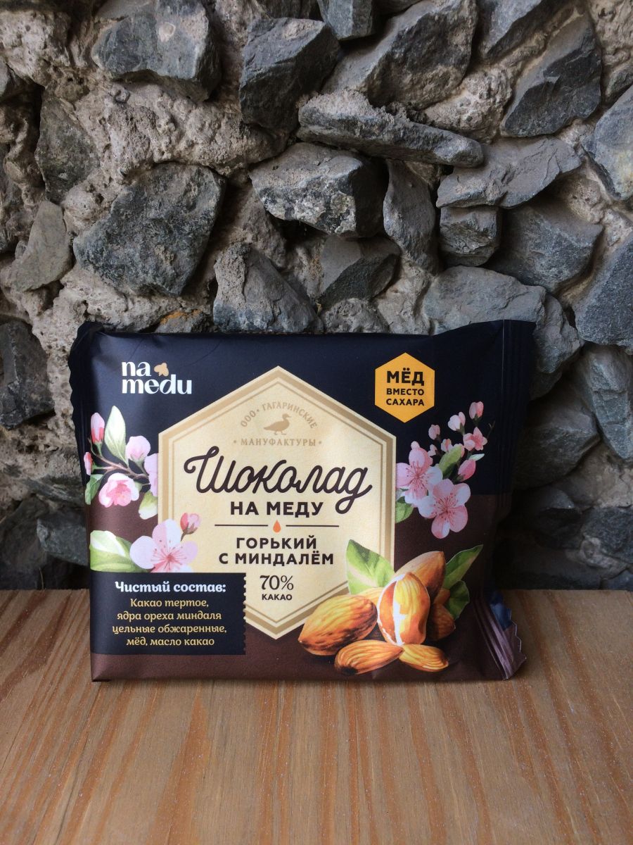 Шоколад «Шоколад на Меду» Горький с Цельным Миндалем 85г