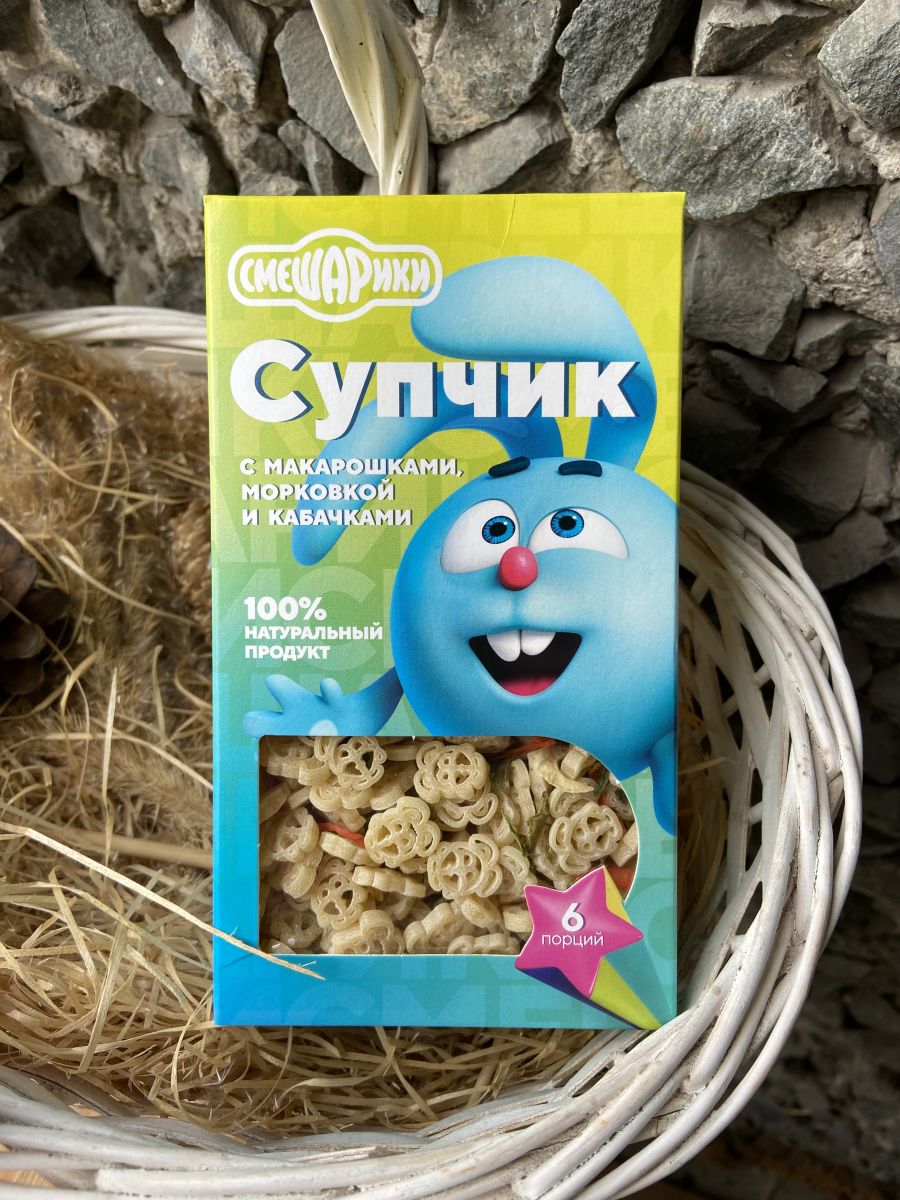 Супчик смешарики с макарошками, морковкой, кабачками 160гр