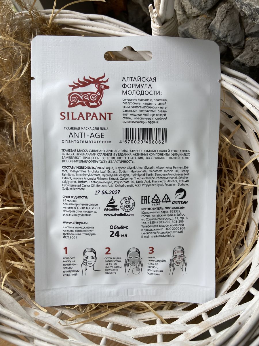 Тканевая маска для лица Silapant” Anti-Age” с пантогематогеном,24мл