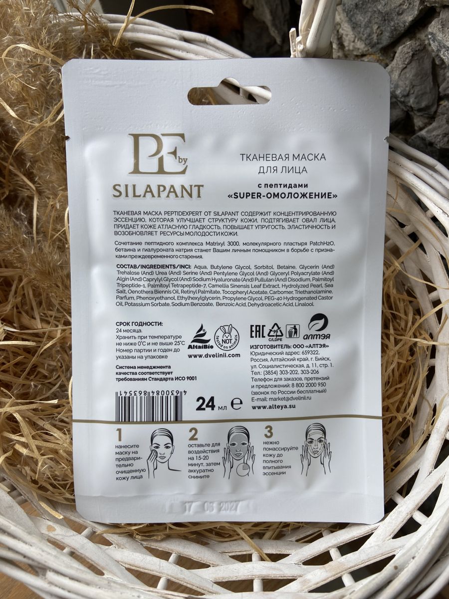 Тканевая маска для лица Silapant»Супер-омоложение»,24мл